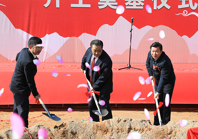 抚州市委副书记、市长张鸿星下达项目开工令,圣农集团创始人傅光明与会领导和嘉宾一同为项目培土奠基。